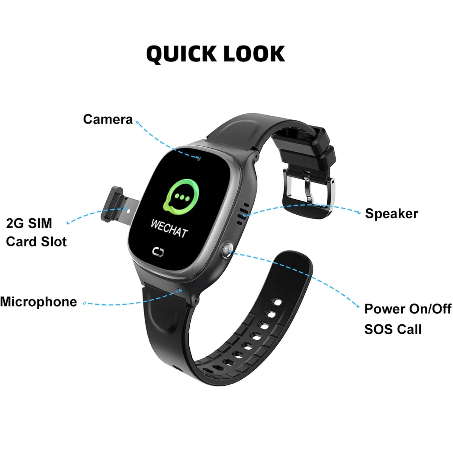 Es unterstützt Anrufe und Nachrichten, sodass Sie direkt mit Ihrem Kind kommunizieren können, ohne ein Mobiltelefon zu verwenden. Der helle IPS-Touchscreen und das einfache Menü machen es auch für kleine Kinder leicht zu bedienen. Es ist wasserdicht (IP67) und verfügt über einen leistungsstarken 450-mAh-Akku, der eine Betriebsdauer von bis zu 10 Tagen bietet.