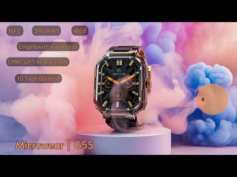 Genießen Sie ein einzigartiges Technologieerlebnis mit der Smartwatch G55, mit einem beeindruckenden 2,01-Zoll-IPS-LCD-Touchscreen und einer kratzfesten Oberfläche. Sie verfügt über integrierte Kopfhörer für Musik und Anrufe über Bluetooth und einen leistungsstarken Dual-Core-Chipsatz RTL8763E. Sie misst Herzfrequenz, Sauerstoff, Schritte und Kalorien und überwacht gleichzeitig die Qualität Ihres Schlafes. Steuern Sie die Kamera Ihres Mobiltelefons, stellen Sie den Wecker ein und genießen Sie bis zu 10 Tage Autonomie mit einem 345-mAh-Akku und magnetischer USB-Aufladung. Mit IP68-Zertifizierung und Kompatibilität mit iOS und Android ist das G55 Ihr idealer Begleiter für den Alltag. Holen Sie es sich noch heute und werten Sie Ihr Handgelenk auf.