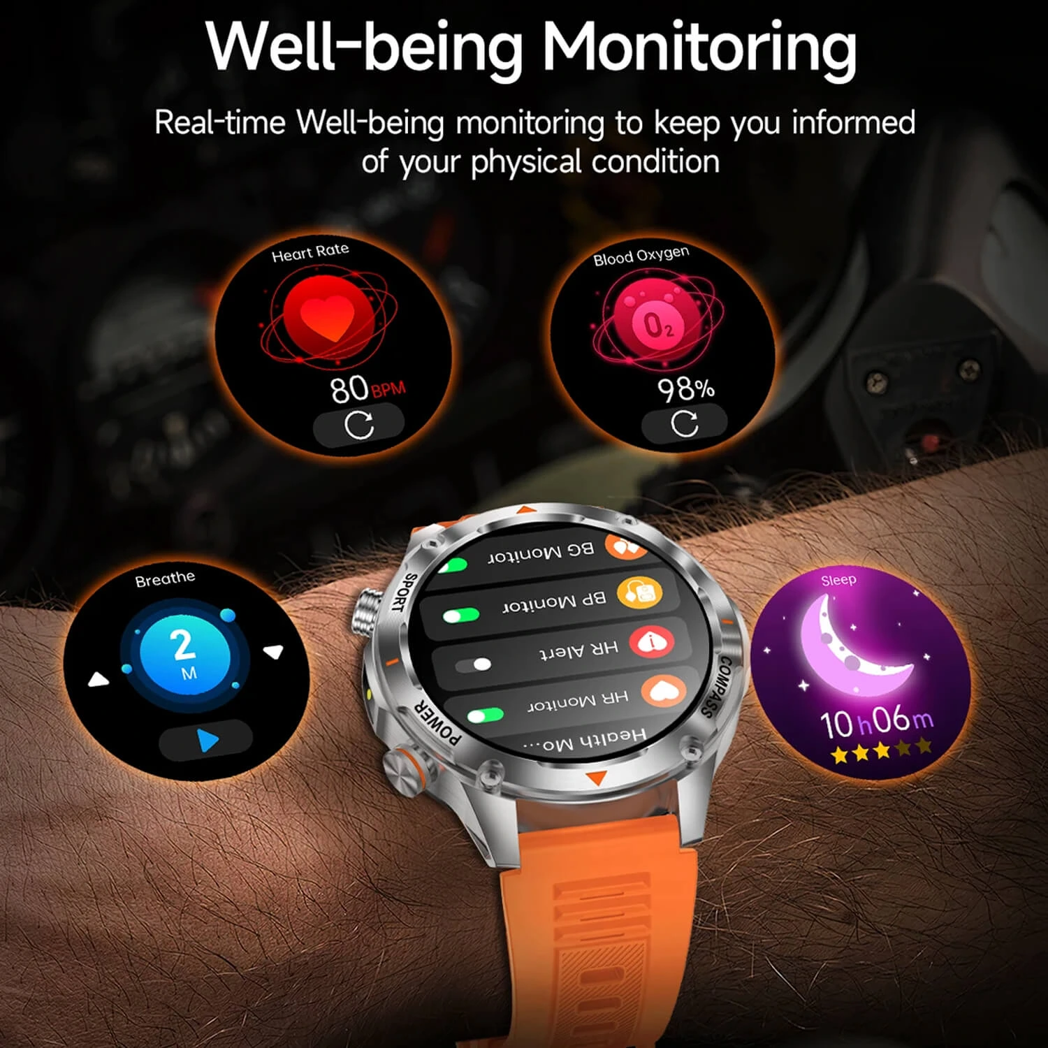 Sie können das Ladegerät wochenlang vergessen! Es lässt sich einfach über einen magnetischen USB-Anschluss aufladen, und die IP68-Zertifizierung schützt es vor Schweiß und Regen. Das 1,46-Zoll-TFT-Display mit einer Auflösung von 360×360 ist hell und widerstandsfähig dank Anti-Scratch-Technologie. Gleichzeitig bietet es: Anrufe direkt über die Uhr, AI Voice Assistant, Music Player, Spiele, Kompass, Taschenlampe, 100+ Sportmodi, Herzfrequenzmessung, SpO2, Musik und AI Anti-Scratch-Technologie. Außerdem bietet es: Anrufe direkt von der Uhr, AI Voice Assistant, Musik-Player, Spiele, Kompass, Taschenlampe, 100+ watch Zifferblätter (auch benutzerdefinierte), Schlaf-, Schritt-, Kalorien- und Blutsauerstoffüberwachung sowie vollständige Benachrichtigungen von allen Apps. Kompatibel mit iOS und Android. Kurz gesagt: